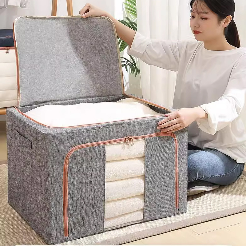 Extra Large Cotton and Linen Storage Box Double Opening Thick Steel Frame Bainer Box Large Capacity Clothes Quilt Fabric Storage Box