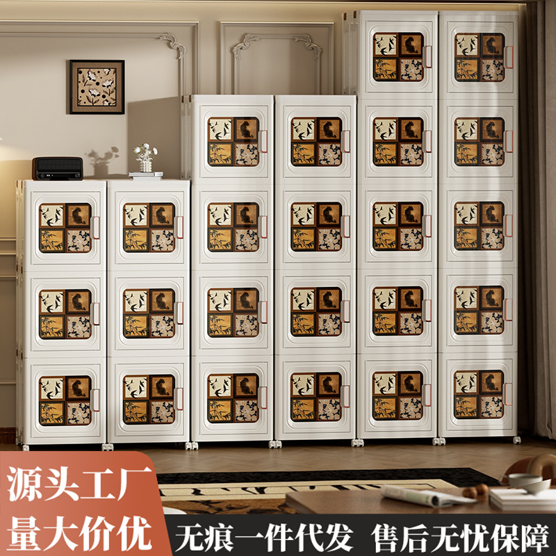 Medieval Style Storage Box Foldable Wheeled Clothes Storage Cabinet Household Large Capacity Stackable Baby and Children's Wardrobe