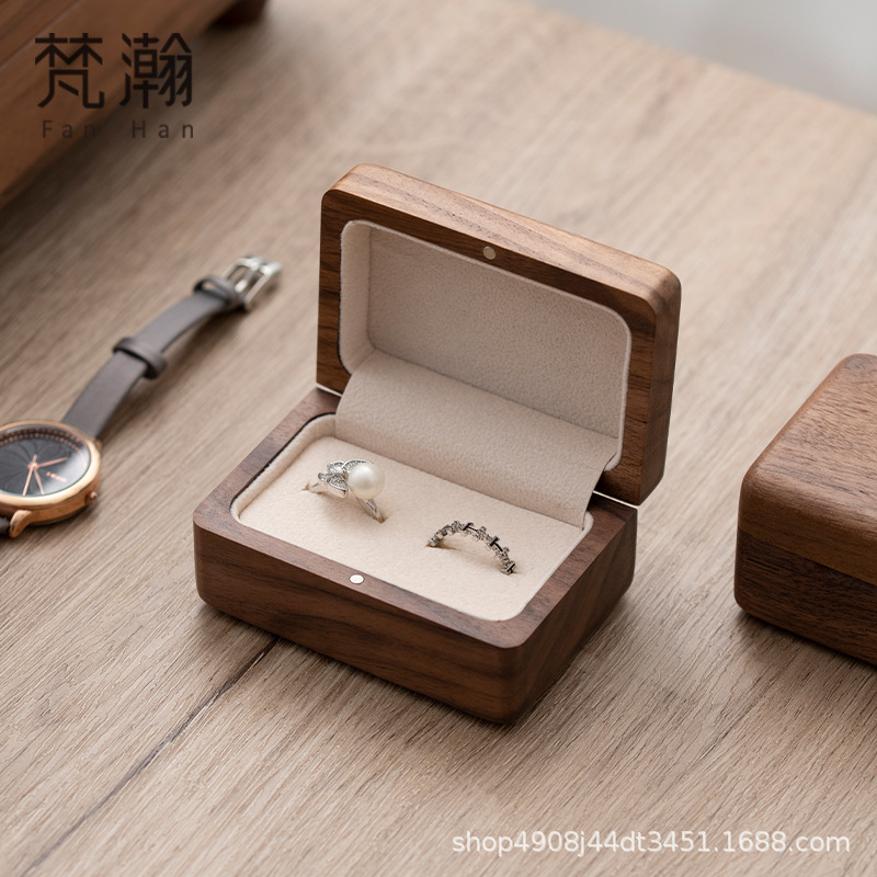 Fanhan High-End Wedding Ring Box Proposal Ceremony Diamond Ring Box Wedding Exchange Wooden Ring Box Storage