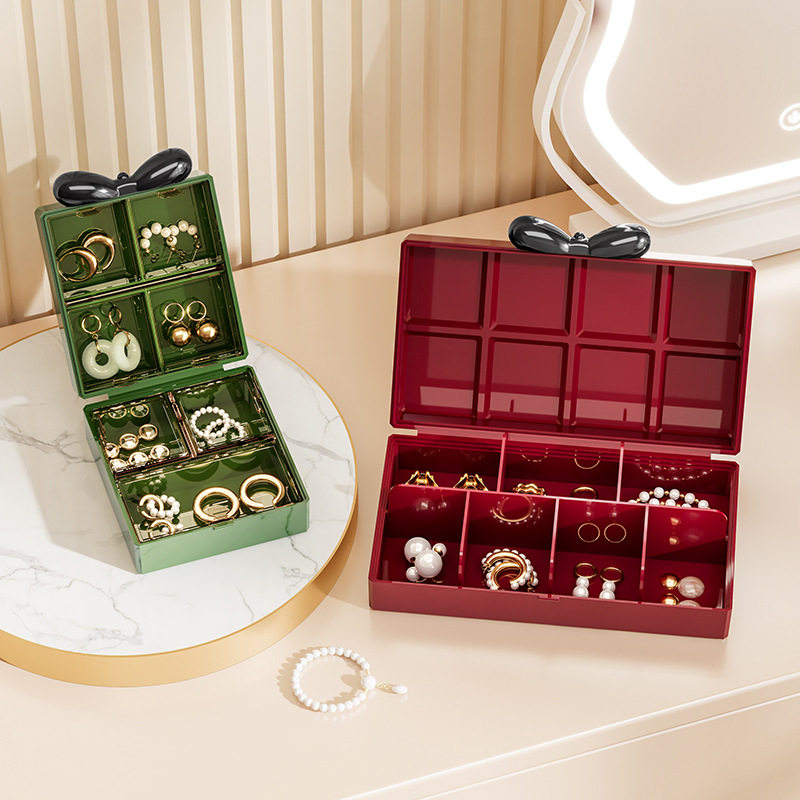 Large-Capacity Multifunctional Portable Jewelry Storage Box Necklace Ring Earrings High-End Bow Jewelry Box