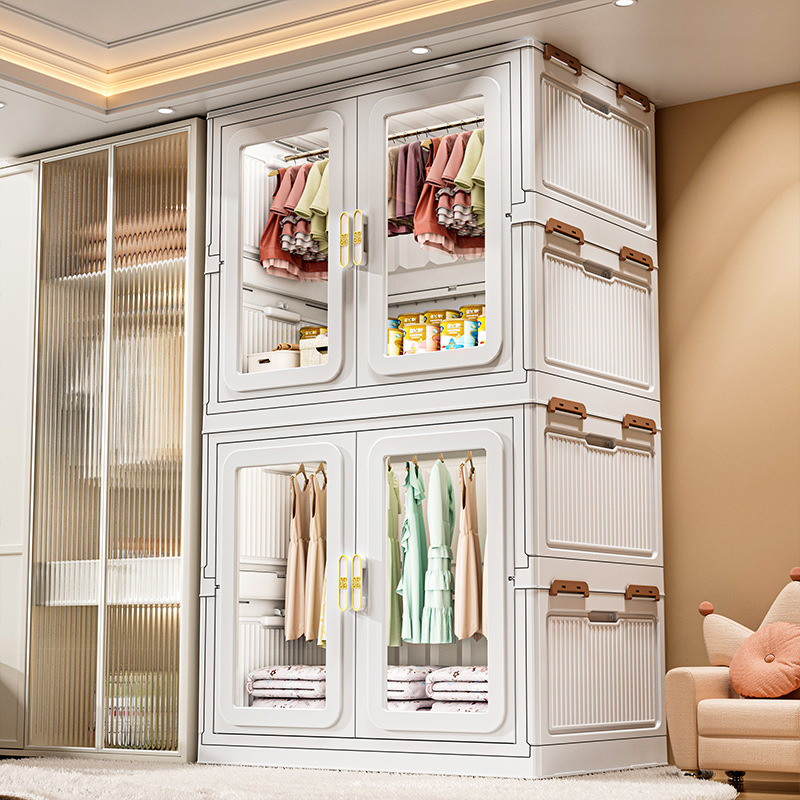 Simple Wardrobe Home Bedroom Installation-Free Adult Folding Durable Children's Quilt Clothes Cabinet for Rental Room