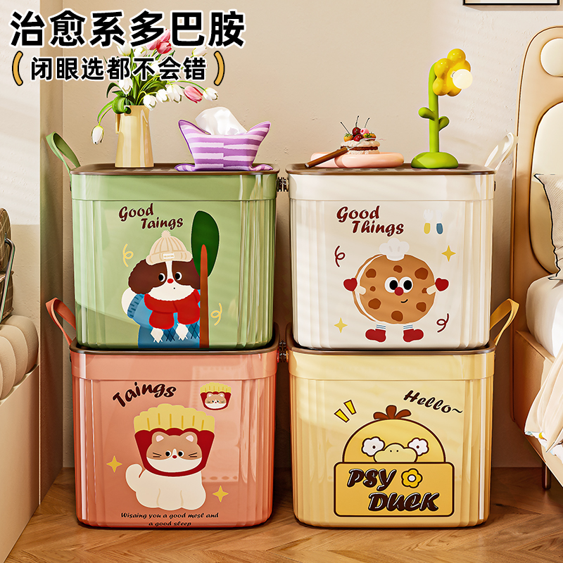 Storage Box with Lid Cartoon Large-Capacity Sundries Desktop Storage Box Snack Toys Living Room Storage Artifact Organizing Basket