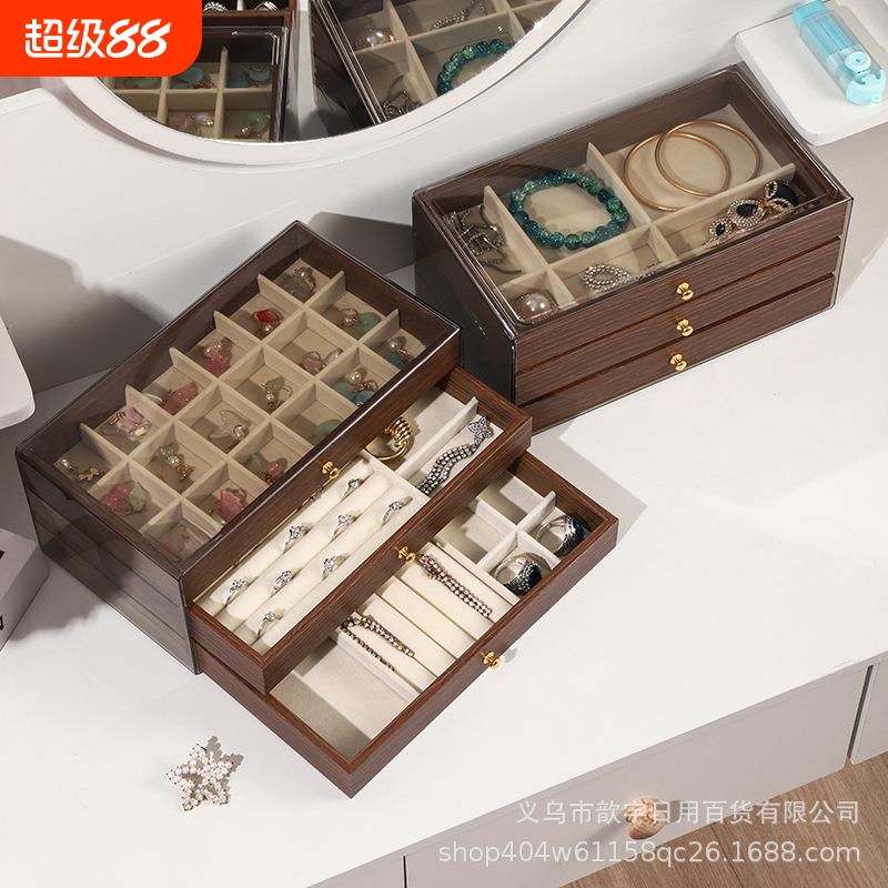 Multi-Layer Jewelry Box, High-End Exquisite Necklace Earrings, Walnut Wood Grain, Large Capacity, 5-Year New Jewelry Box