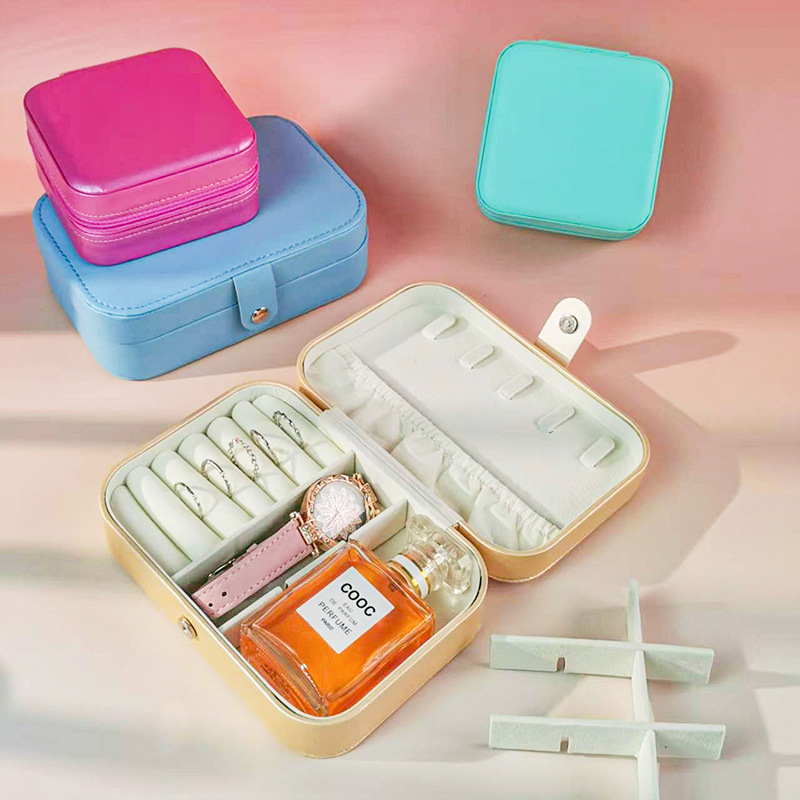 Travel Portable Medium Jewelry Box Simple Pu Leather Jewelry Box Ring Necklace Jewelry Storage Box Earrings Earring Box