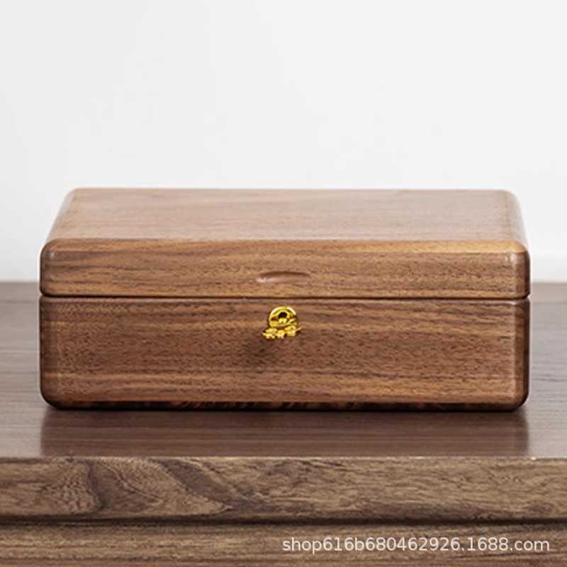 Black Walnut Solid Wood Jewelry Storage Box, Exquisite Ring Necklace, Double-Layer Retro Hand Jewelry Wedding Gift Box