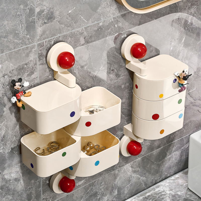 Dopamine Suction Cup Rotating Jewelry Box High-End Exquisite Bathroom Earrings Necklace Hairpin Hair Band Jewelry Box