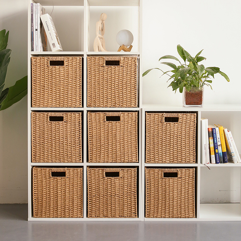 Professional Storage Basket Rattan Woven Living Room Bookshelf Grids Drawer-type Cloakroom Cabinet Storage Box Can Be Covered