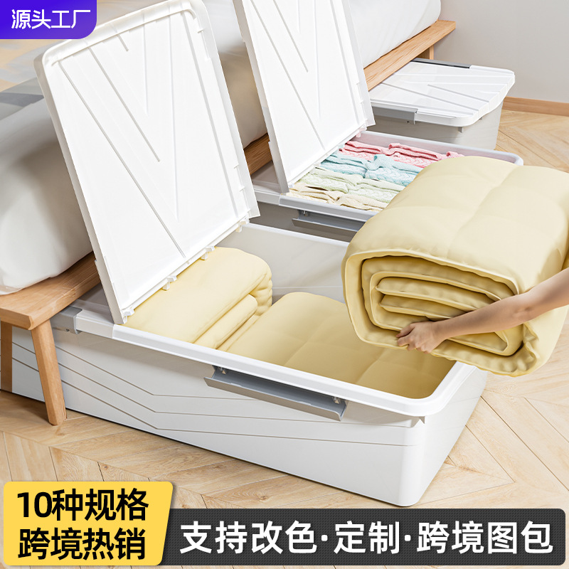 Bed bottom storage box plastic with pulley clothing quilt bed bottom with wheels storage box shoes under bed storage box