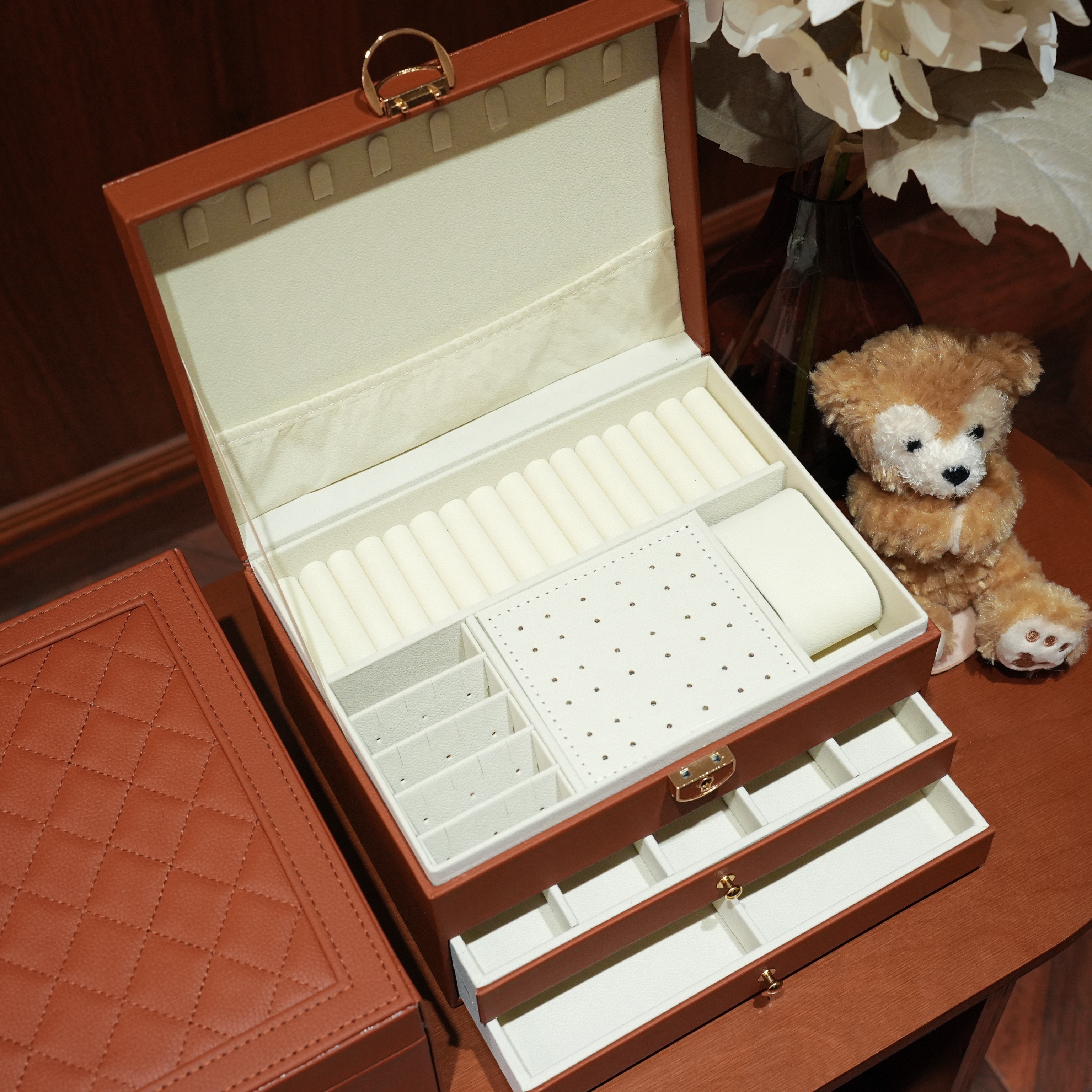 "Rhombus Treasure Box" Brown Multi-Layer Large Capacity Jewelry Box Ring Bracelet Earrings Storage Box High-End Jewelry Box
