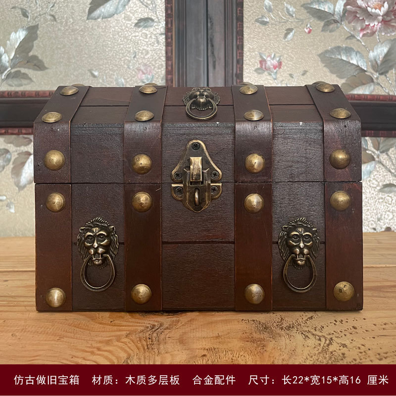 Old-fashioned pirate box with lock treasure box European retro antique souvenir gift box shooting script killing