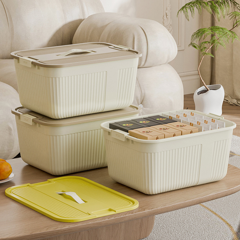 Household Storage Box Large Capacity Thickened Portable Cream Style Storage Box Sundries Toys Snacks Plastic Storage Box