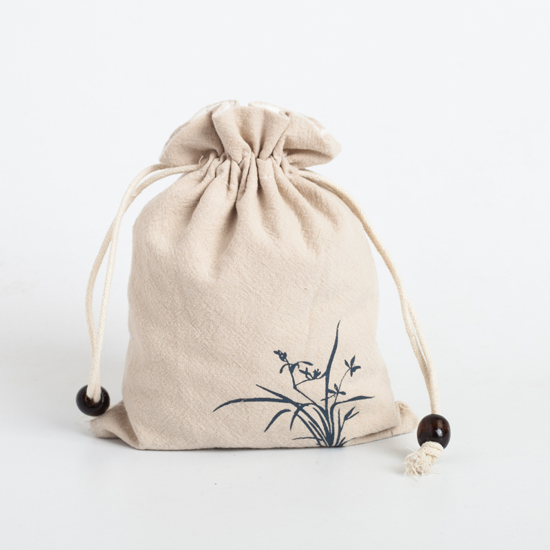 Cotton and Linen Embroidered Drawstring Pouch Lucky Bag for Cultural Artifacts, Jewelry, Buddhist Beads, Vintage Thickened Linen Storage Bag, Customizable