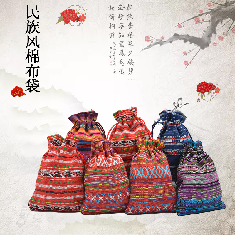 Wholesale Ethnic Style Cotton Cloth Bundle Pocket Colored Cotton Comb Play Plate Bead Handstring Gift Packaging Chinese Style Incense Bag
