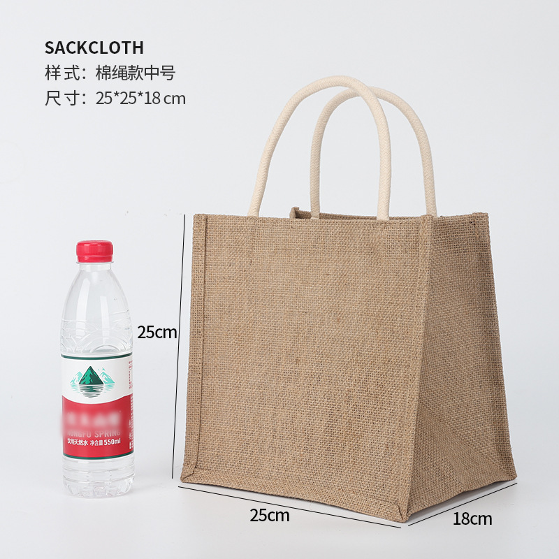 Linen bag gift shopping bag hand-painted linen bag cotton rope medium 25*18*25 1
