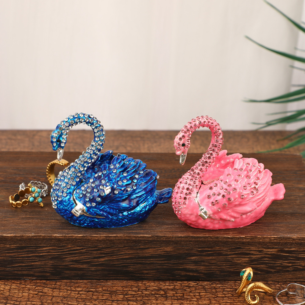 Swan Jewelry Box Sky Blue Exquisite Crystal Home Ornaments Creative Earrings Necklace Box Girl Birthday Gift