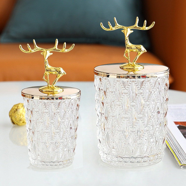 Light Luxury Nordic Golden Glass Sealed Storage Jar Cosmetic Cotton Swab Storage Decorative Ornaments Toothpick Storage Box Ornaments