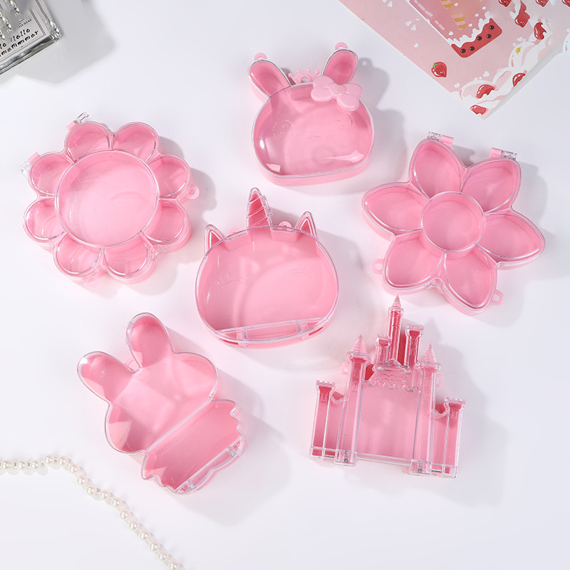 Transparent plastic storage box pink flower rabbit flip partition box jewelry accessories storage box Castle box