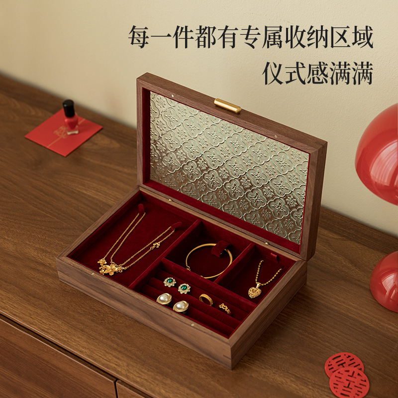 Solid Wood Jewelry Box Storage Box, High-End Accessible Luxury Three Gold Hardware Jewelry Display Box, Engagement Gift Box, Engagement Wedding Gift