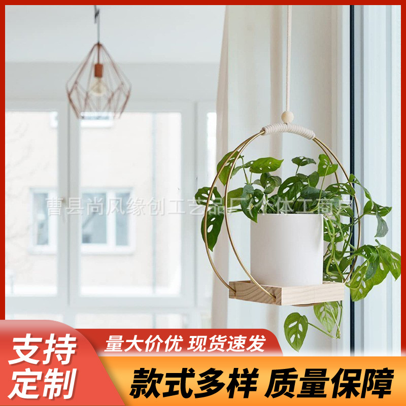 Creative Wooden Hanging Iron Flower Pot Hydroponic Plant Flower Set Air Hanging Decoration Balcony Simple Garden Decorative Rack