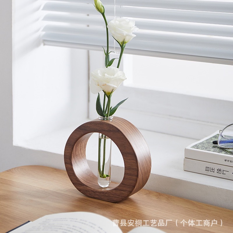Solid Wood Living Room Desktop Decorative Flower-arranging Set Plant Test Tube Storage Glass Vase Water-growing Flowers Hydroponic Wooden Ware