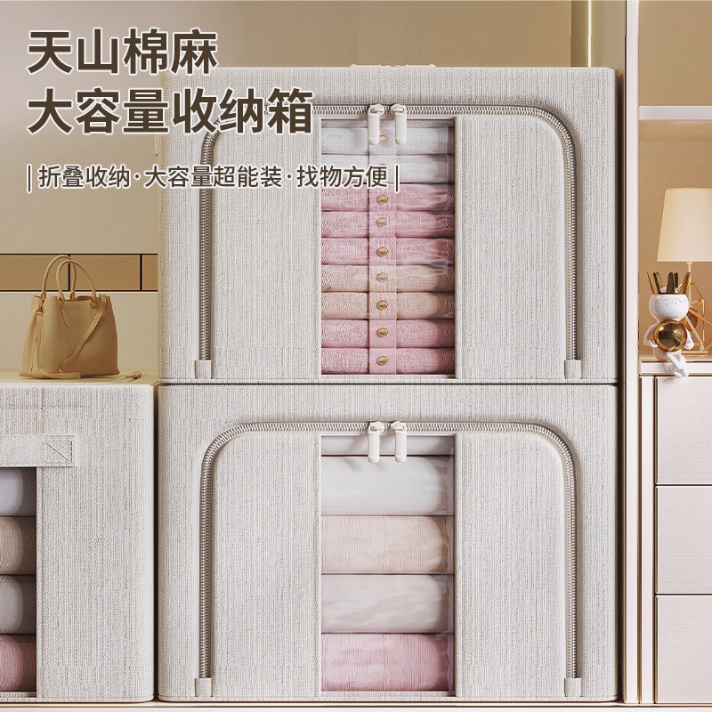 Tianshan Cotton and Linen Storage Box Thickeneded Household Quilt Storage Box 5.0mm Steel Frame Foldableing Clothes Storage Box
