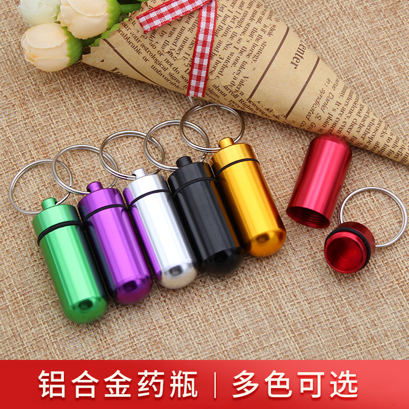 Outdoor portable medicine bottle aluminum alloy key chain hanging bottle mini waterproof small medicine jar portable sealed warehouse small medicine box