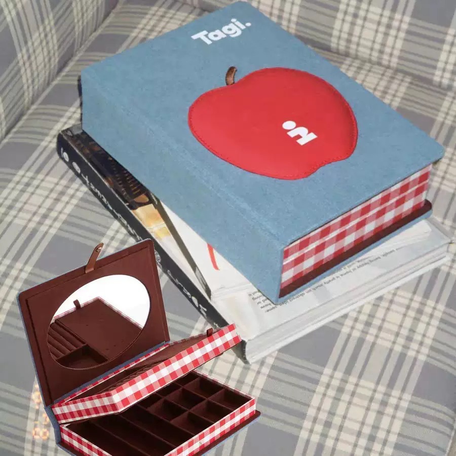 Tagi. Double-Layer Book-Shaped Mirror Jewelry Storage Fabric Buckle Box Wooden Jewelry Box Accessories Necklace Sweet Girl Style