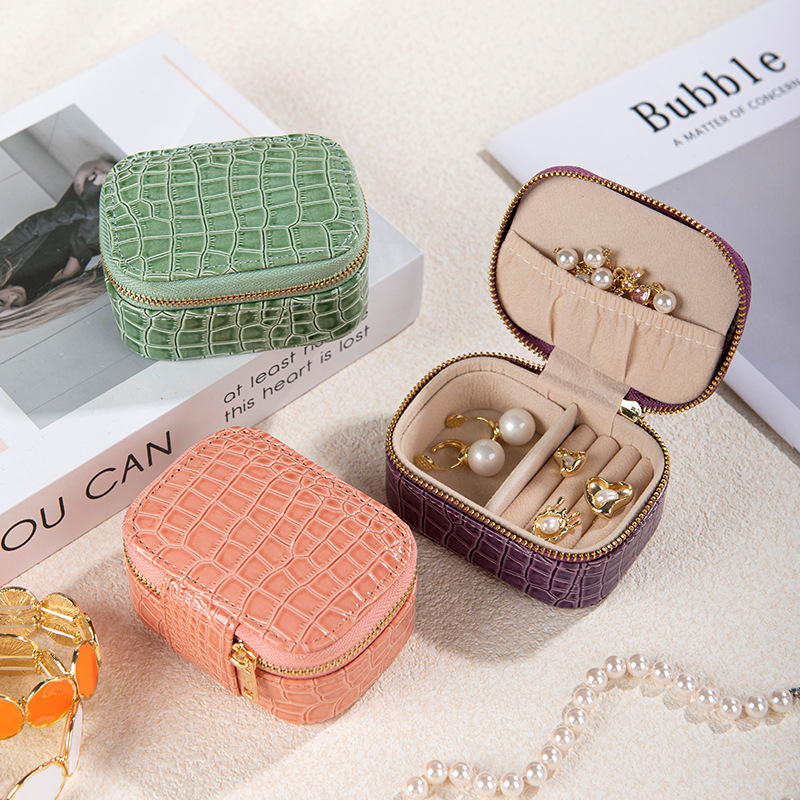 Cross-Border Portable Travel Jewelry Box Pu Crocodile Pattern Jewelry Storage Bracelet Jewelry Earrings Jewelry Storage Box Wholesale