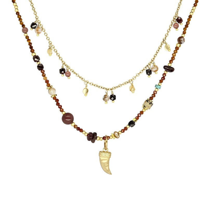 Traveler's Horn Necklace Women's Multi-Layered Maillard Color Stacking Pendant Chain Tribal Sweater Chain