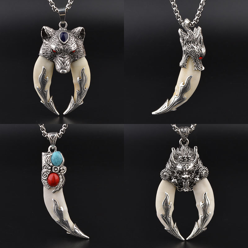Xizang domineering spike totem pendant necklace large real black dog teeth alloy bag braces men's and women's fashion accessories