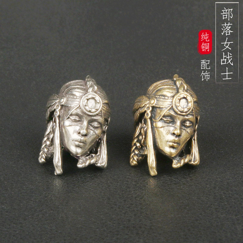 Brass Tribal Female Warrior Edc Knife Pendant Retro Paracord Pendant Braided Rope Bead Pendant Keychain Pendant DIY Accessories