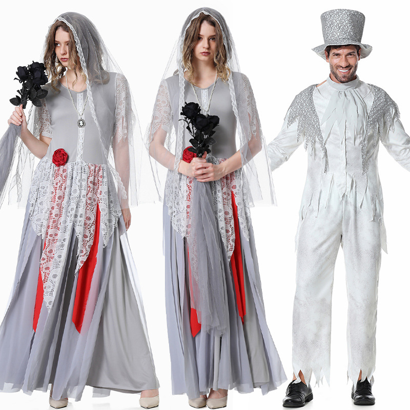 Halloween Cos Vampire Carnival Night Adult Men and Women White Ghost Bride and Groom Cosplay Performance Costume