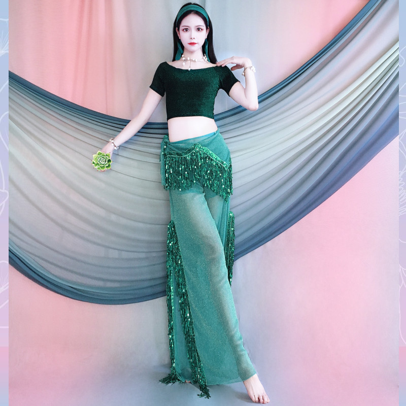Belly Dance Bottoms Tassel Bell Bottoms Modern Dance 2025 New Practice Performance Clothing Set Oriental Dance Clothing