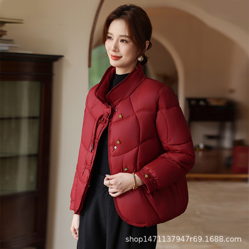 Little Goldfish Style Button Pendant Cotton Coat for Women 2025 Plus Size Loose Fit Stand Collar Winter Warm Jacket New Chinese Style