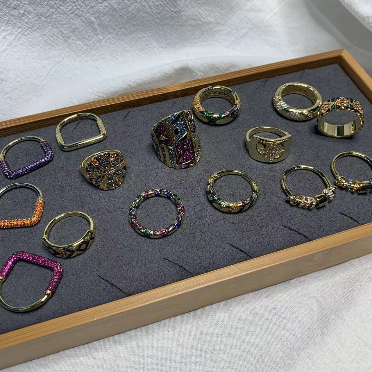 European and American Version Tribal Colorful Ring Women's Cross Pattern Line Pair Ring Colored Diamond Rotating Ring Star Geometric Finger Ring