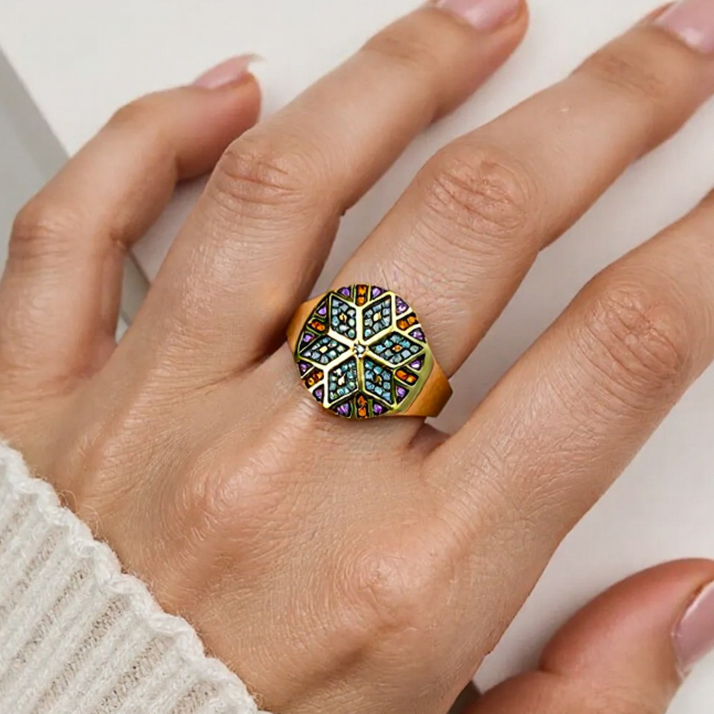 Tribal Ethnic Pattern Ring European and American Version Advanced Sense Cross Pattern Geometric Ring European and American Ins Ring