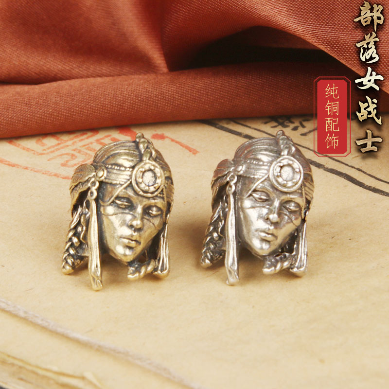 Brass Tribal Female Warrior Creative Knife Pendant Edc Paracord Pendant Braided Rope Bead Pendant Keychain Pendant DIY Accessories
