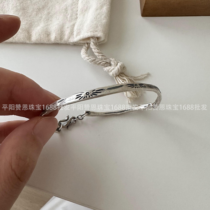 925 Sterling Silver Mars25 Korean Generation Ins Niche Homemade Tribal Bracelet Handmade Old Texture Commuter Bracelet