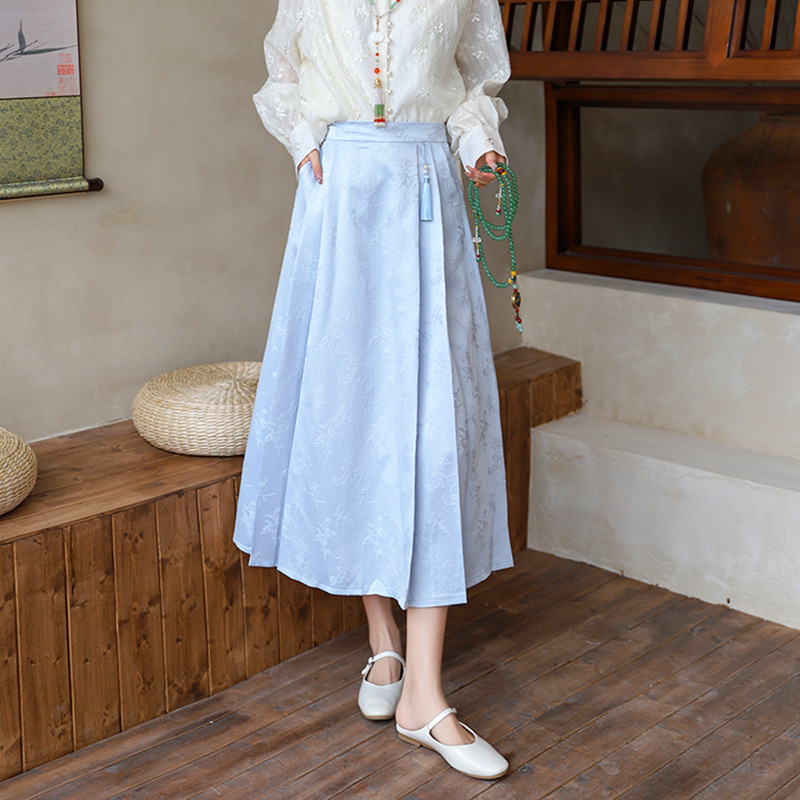 National Style New Chinese Style Mid-length Jacquard Skirt Women's Spring and Summer New Tassel Pendant Hanfu Improved Horse Face Skirt