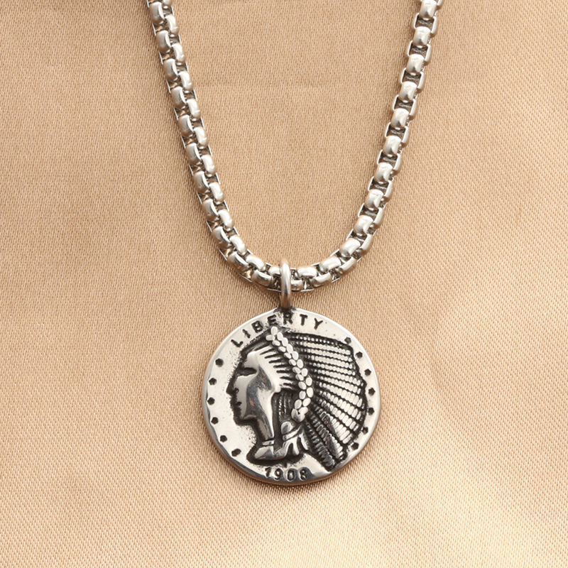 European and American Jewelry Titanium Steel Tribal Women's Necklace Pendant Personalized Punk Retro Trendy Men Tribal People Round Stainless Steel Pendant