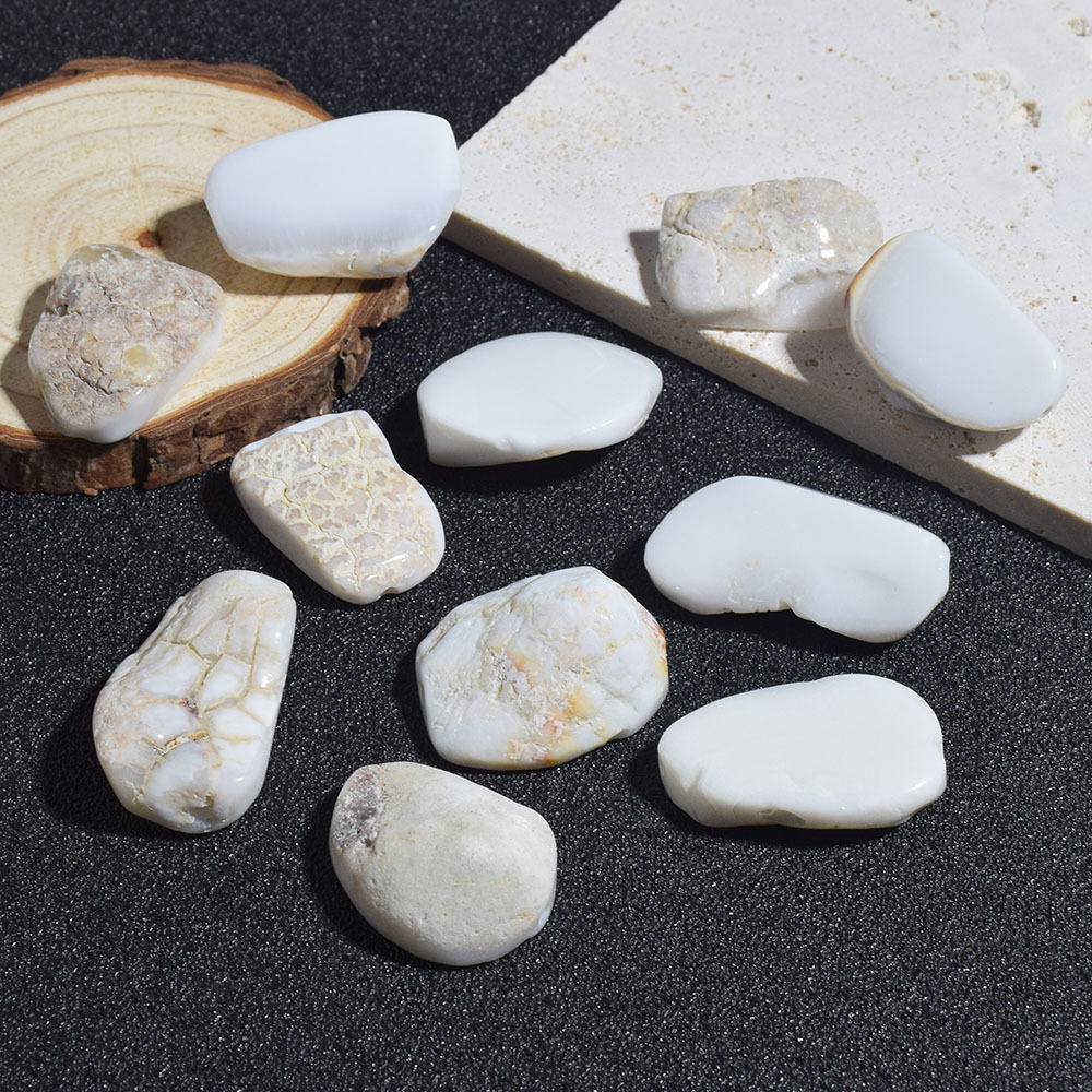 Natural white agate stone calcified irregular beads single beads DIY beaded necklace text play bracelet accessories material