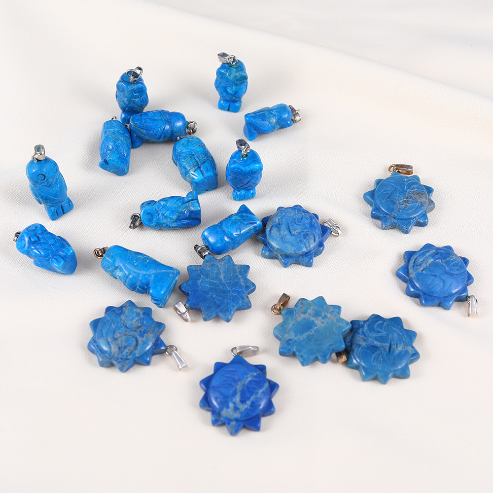 Cross-border new blue grain stone owl necklace pendant single pendant women's fashion small sun sweater chain pendant accessories