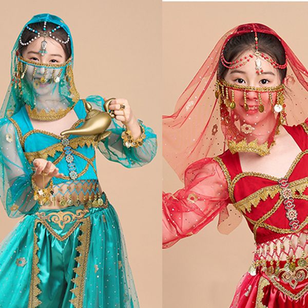 Indian Dance Performance Belly Dance Practice Exotic Veil Kidsren's Ethnic Style Retro Tassel Gauze Mask
