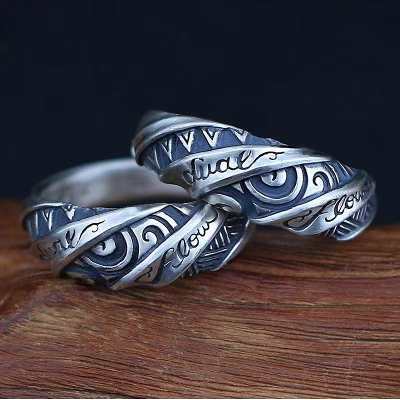 Xinqi Jewelry Retro Tribal Moire Ring Men's Cold Style Fashion Trend Old Thai Silver Totem Open Ring