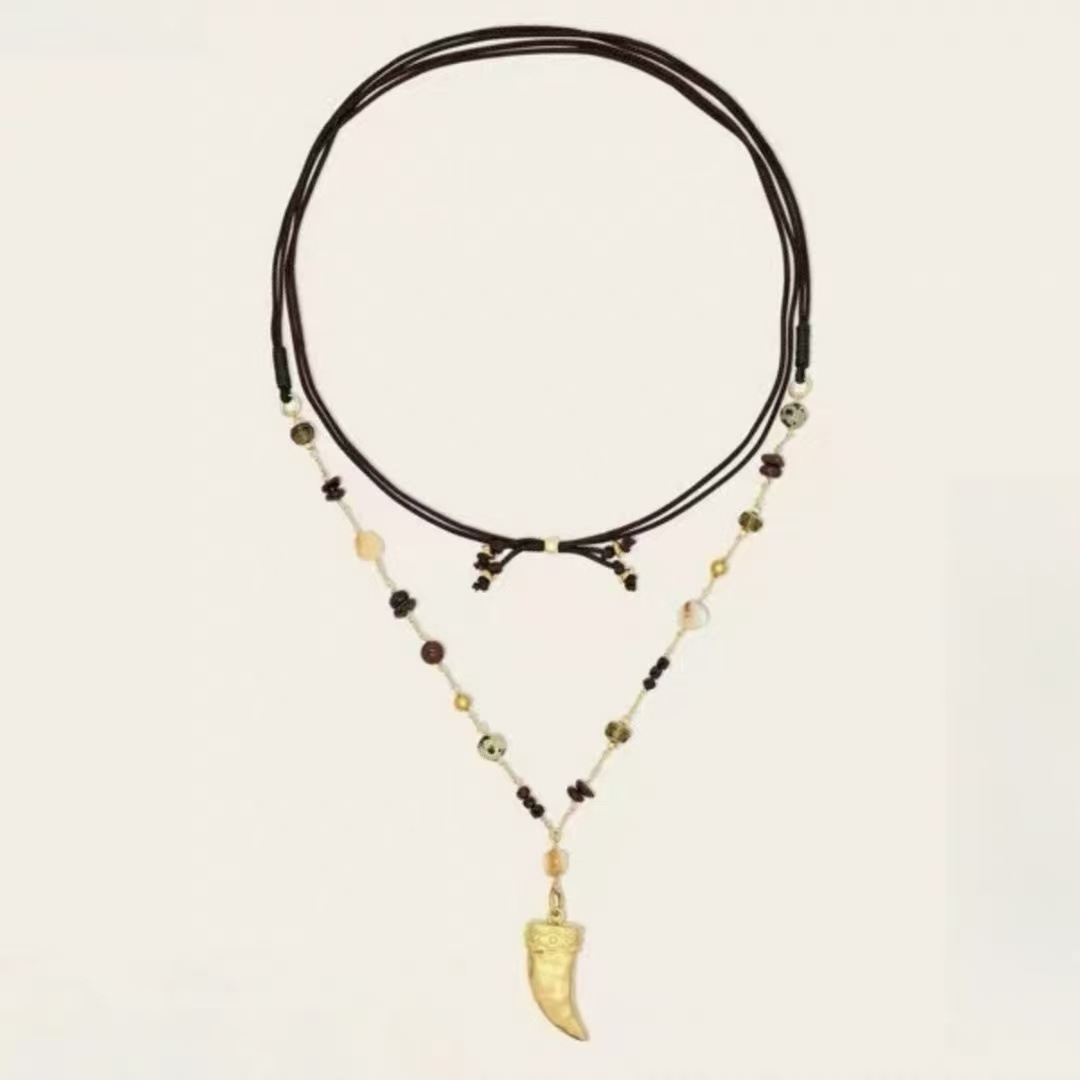 Traveler's Horn Sweater Chain Tribal Style Daily Maillard Color Long Necklace Women's High-End Light Luxury Stacking