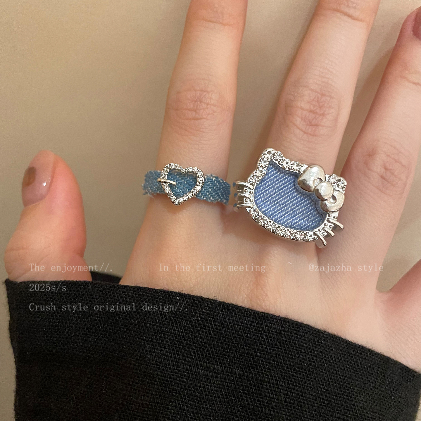 [Denim Tribe] New Design Versatile Niche Denim Kt Cat Ring High-End Childlike Style Creative Ring