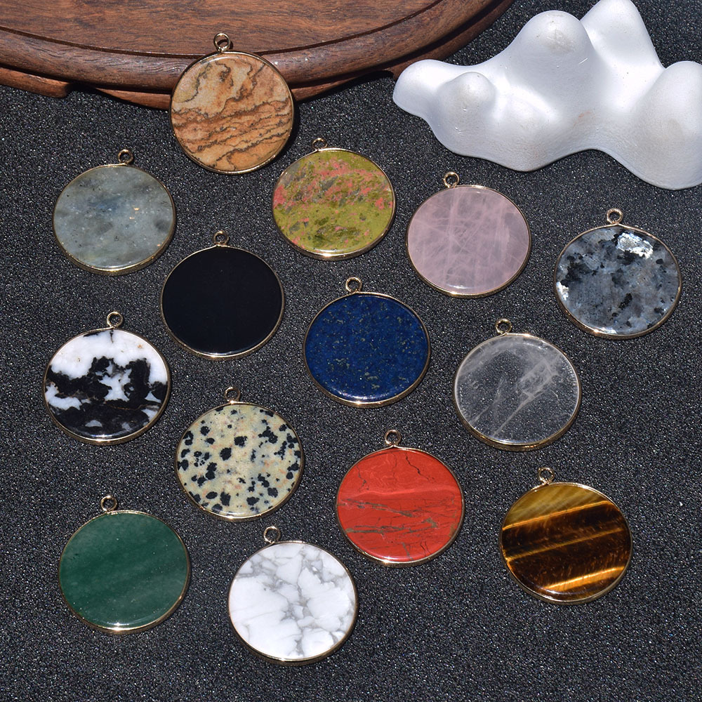 Natural Crystal Agate Pendant Gold Edge Disc Single Pendant Women's Necklace Accessories Handmade DIY Jewelry Earrings Pendant