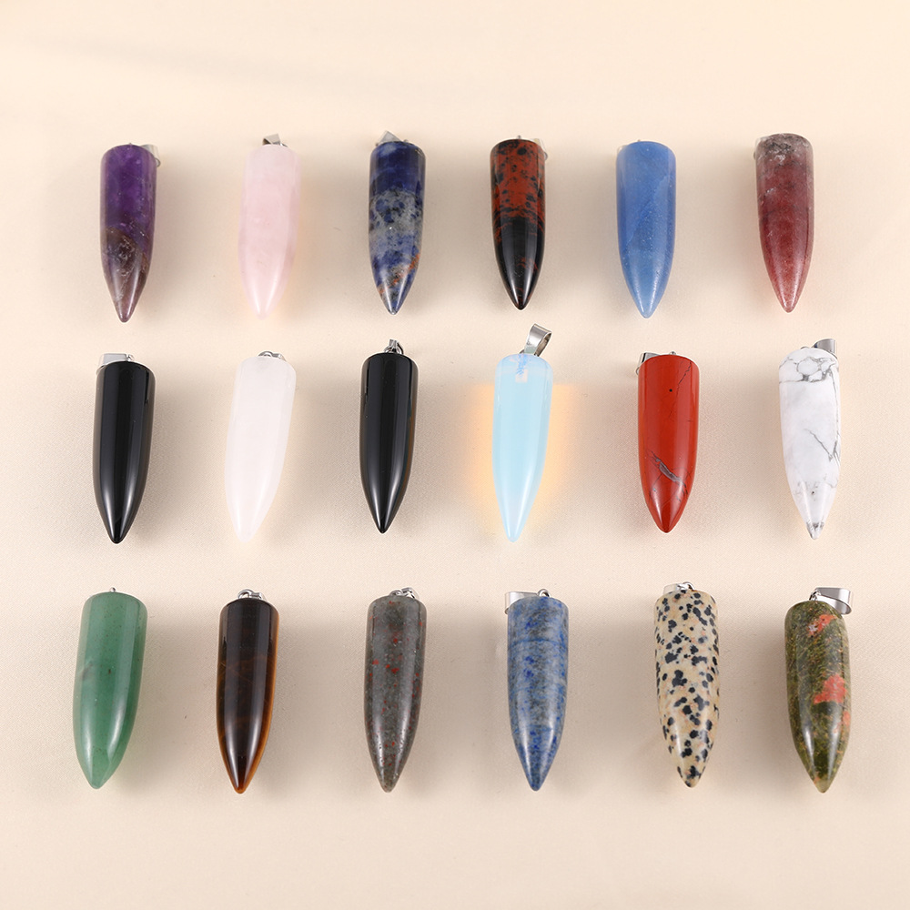 Crystal agate 12*40mm conical bullet necklace pendant accessories DIY sweater chain bag key chain pendant