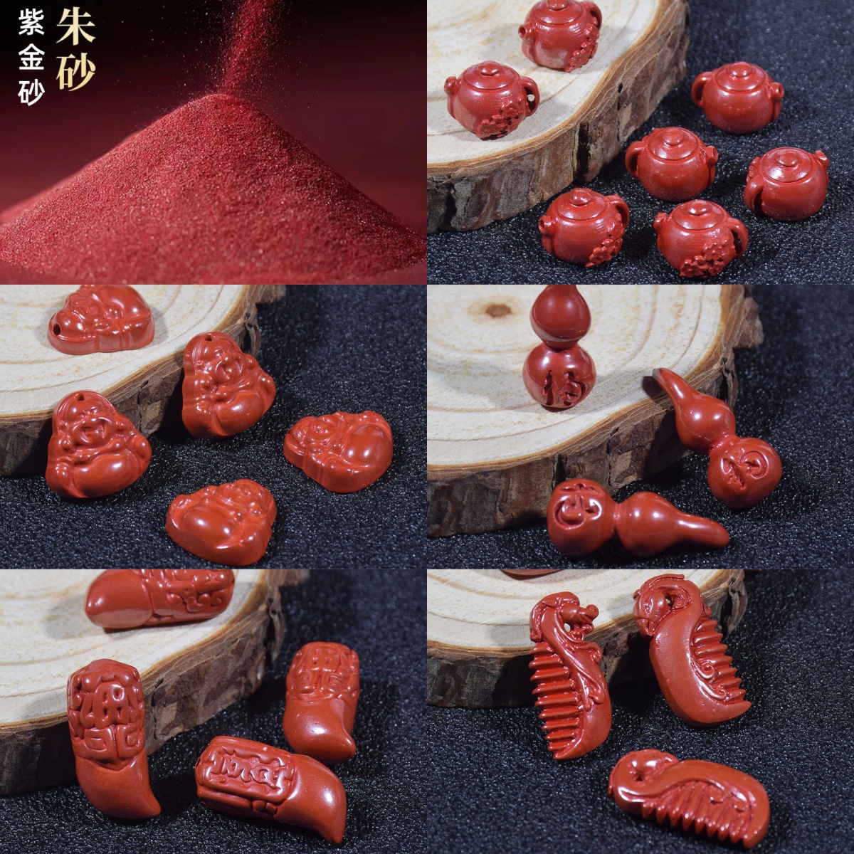 Raw cinnabar imperial sand pendant single pendant gourd handle pot DIY jewelry necklace bracelet accessories text play with beads