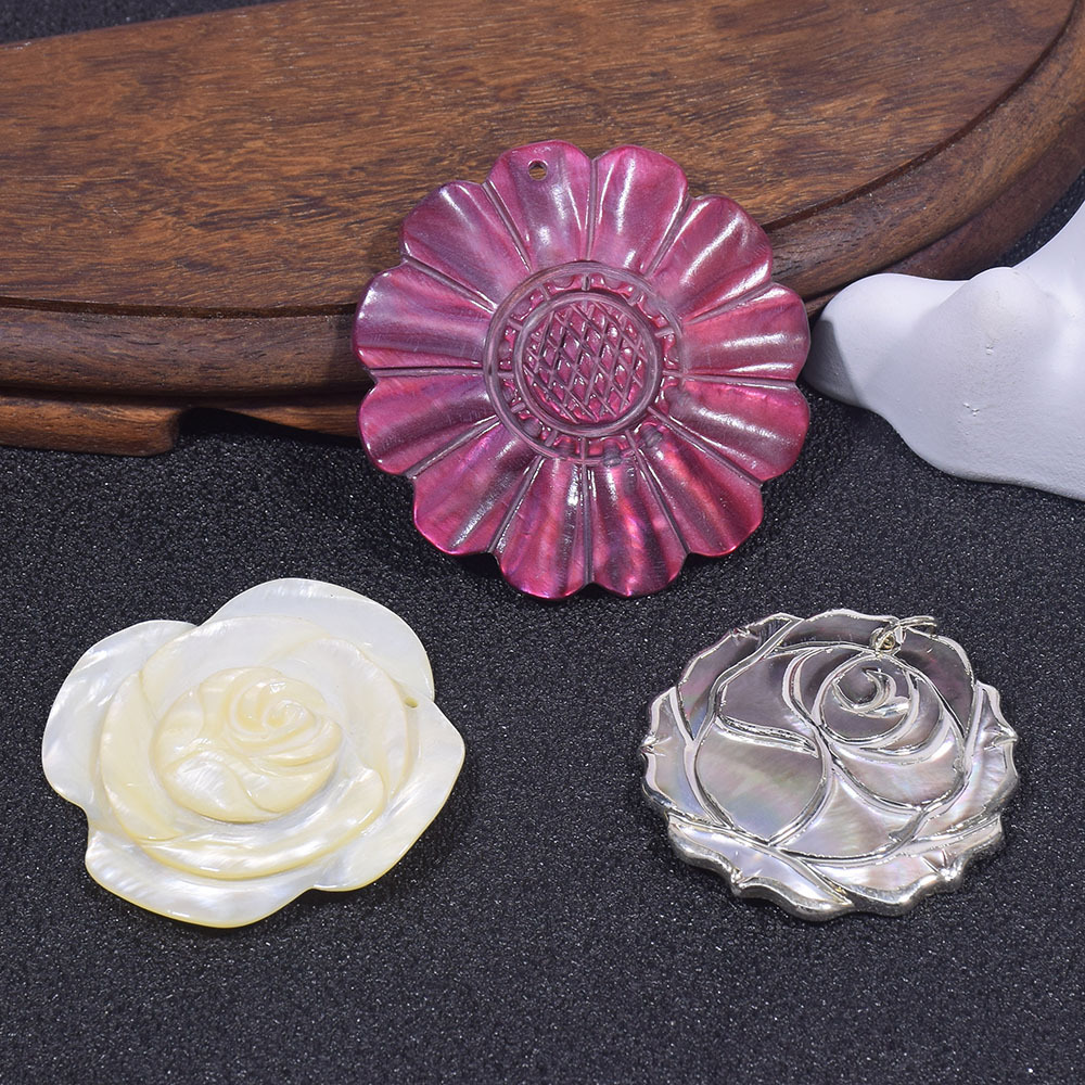 Natural Shell Necklace Pendant Single Pendant Female Carved Flowers DIY Necklace Pendant Accessories Decoration Accessories Wholesale
